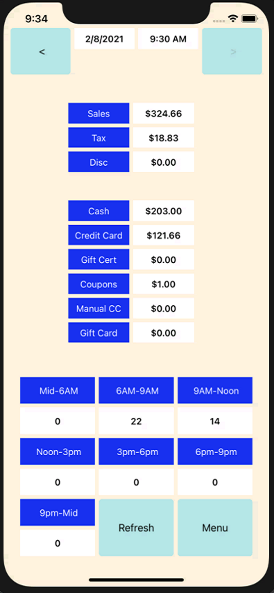 Merchandise Manager Sales are pulled to a secure cloud database for instant retrieval. Tracks the number of transactions being run throughout the day. (Helps keep staffing at an efficient level). Tracks dollar sales and all payment types.