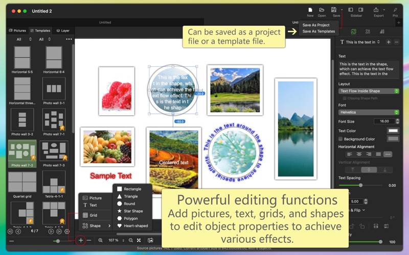 (1) You can edit and modify the collage based on the existing template, or you can build the collage from the blank. Can be saved as a custom template at any time.