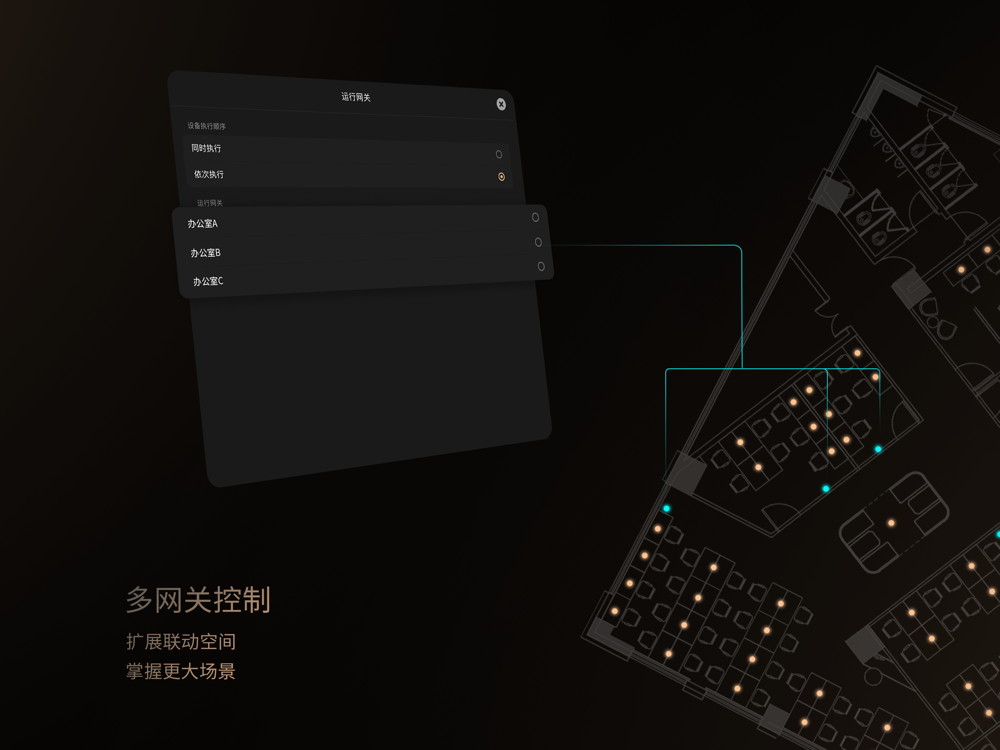 - 分级管理调控一个地点、一间房、一个区域到一个光源;