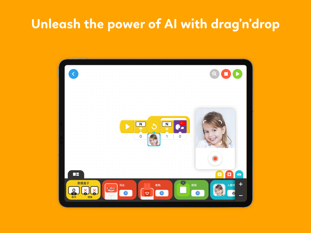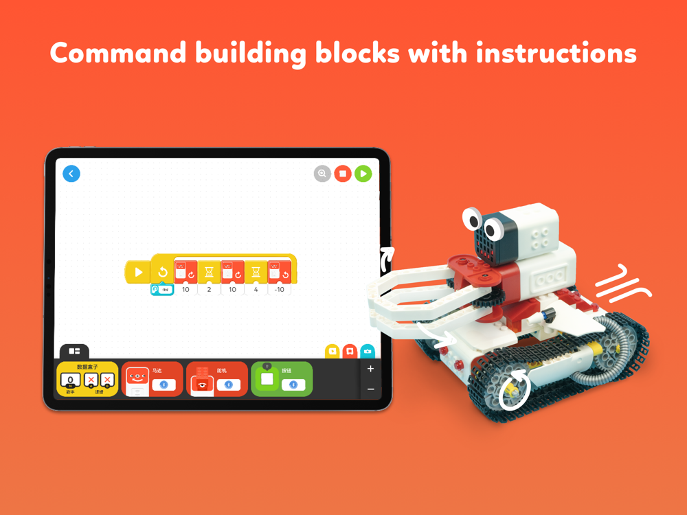 Horizontal graphic coding language for children that complies with MIT's Scratch Jr. design. With improved sequencing, events, conditions, and logical operations, Block is the ideal language for hands-on algorithms. Powered by Tinkamo Smart Building Blocks, you can extend your fun coding beyond the screen.