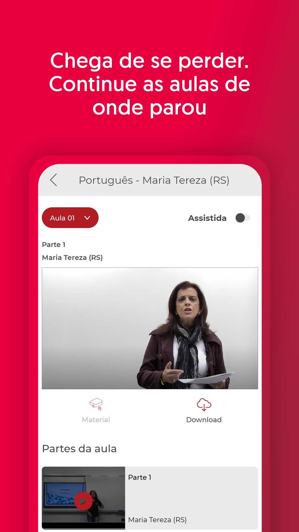Baixe as aulas e assista offline