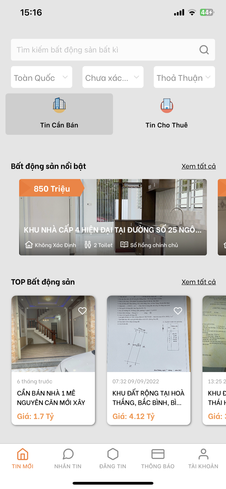 Chào mừng bạn đến với Ứng dụng tìm kiếm nhà đất, đăng tin & quản lý tin đăng cho nhà kinh doanh bất động sản.