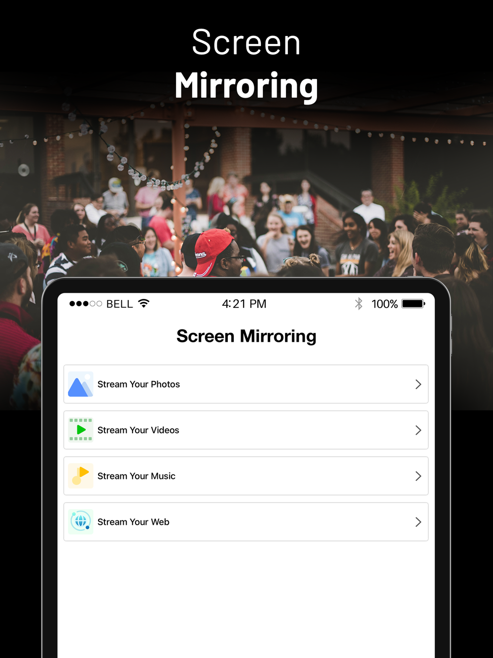 Screen Mirroring with All TV is a technique, which allows you to mirror your smartphone on the TV screen. Screen Mirroring with All TV connect phone to tv App, you can stream to smart tv from phone and screen share to your iPhone. It's tv mirror.