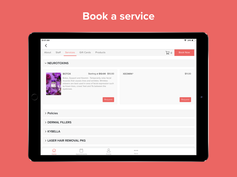 • Book skincare, laser hair removal, or body sculpting services with your favorite service provider