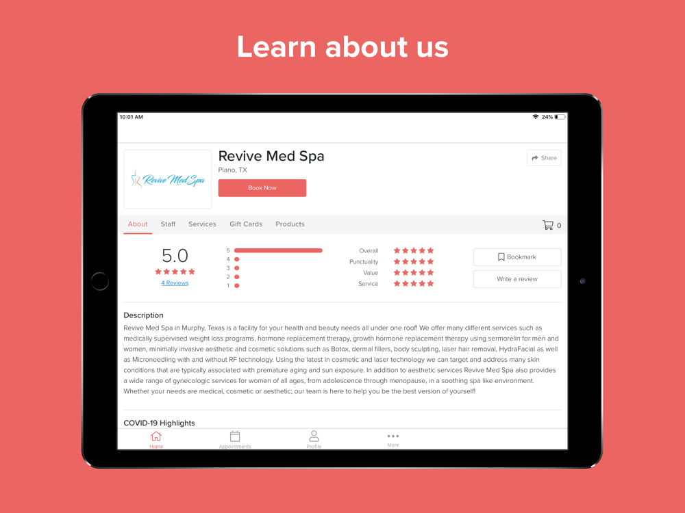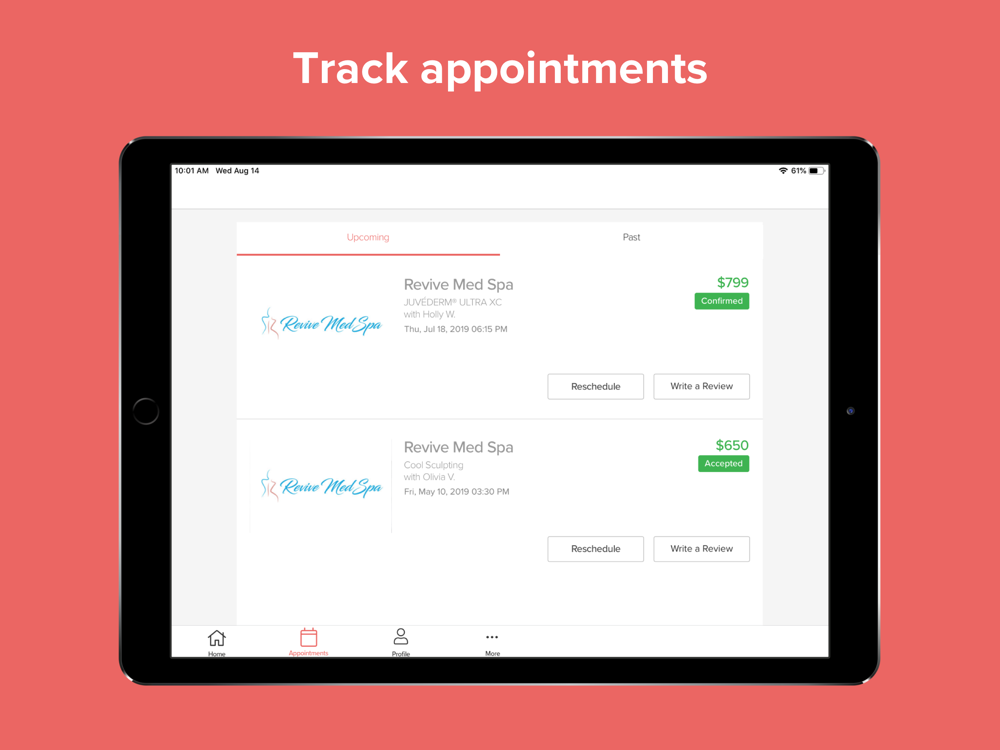 With the Revive Med Spa mobile app, booking services in the Plano, TX area is easier than ever!