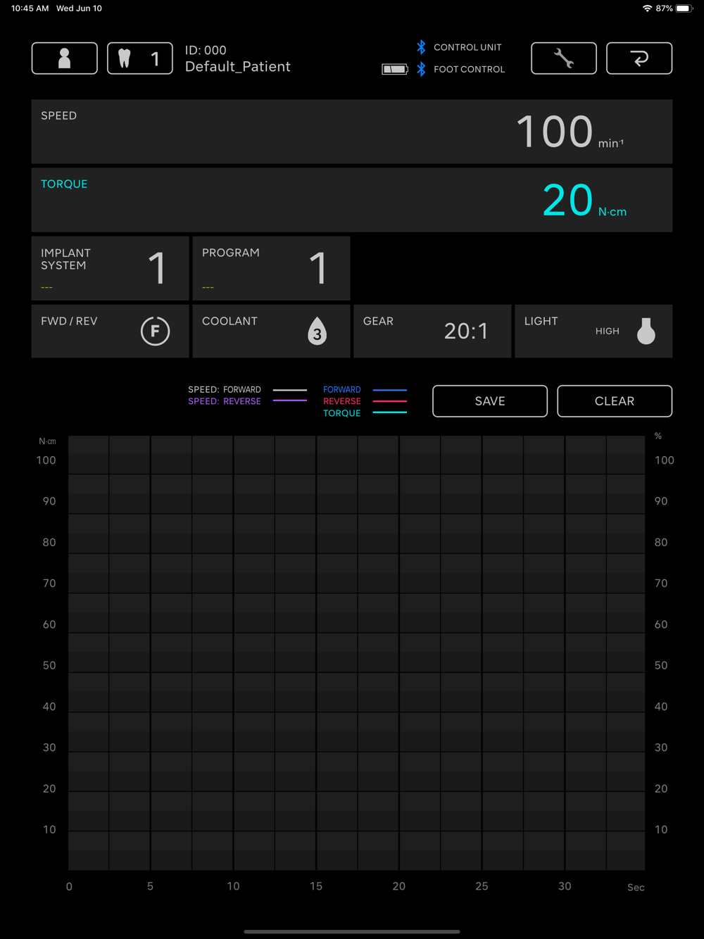 By connecting this app with SurgicPro2 via Bluetooth,the data such as rotation speed and torque can be displayed or saved.