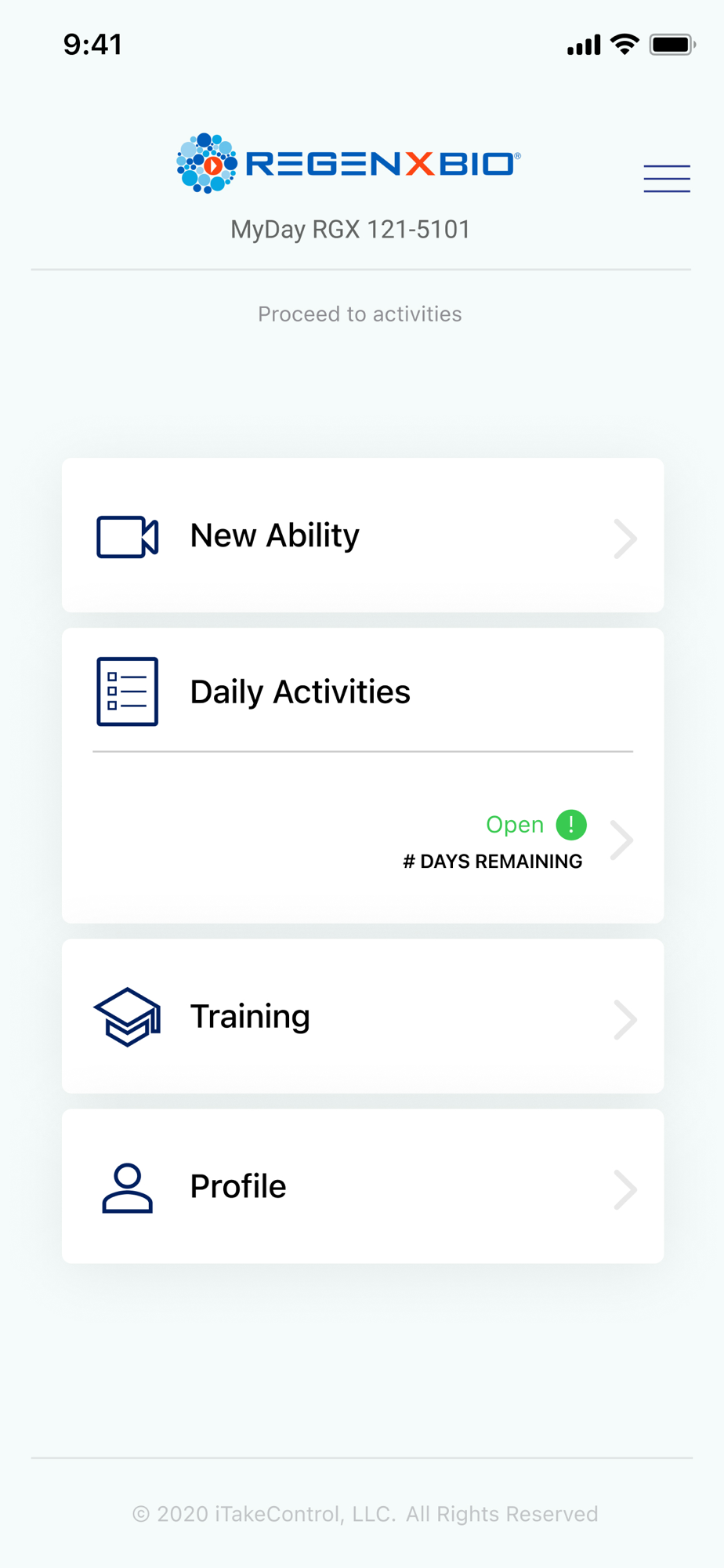 This is a mobile app in support of the RGX 121-5101 Study. You will only be able to login and utilize this mobile application if you have been contacted and received an email invitation to register. This application is brought to you by iTakeControl, it is designed to allow participants to view training material and submit video responses.