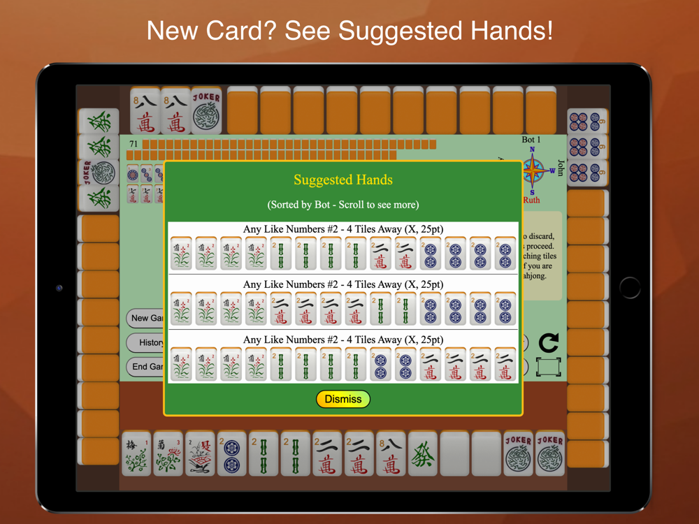 Mahjong 4 Friends allows you to play mahjong with your friends and/or bots! American, Chinese, Hong Kong, and British Mahjong are supported. Can't play your way? Send us an email!