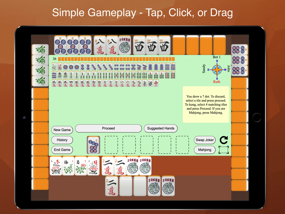 Mahjong 4 Friends provides instructions in little yellow bubbles while in the game. If you want to learn more about rules and strategies, a comprehensive tutorial is linked to from the app. Summaries of rules are provided below: