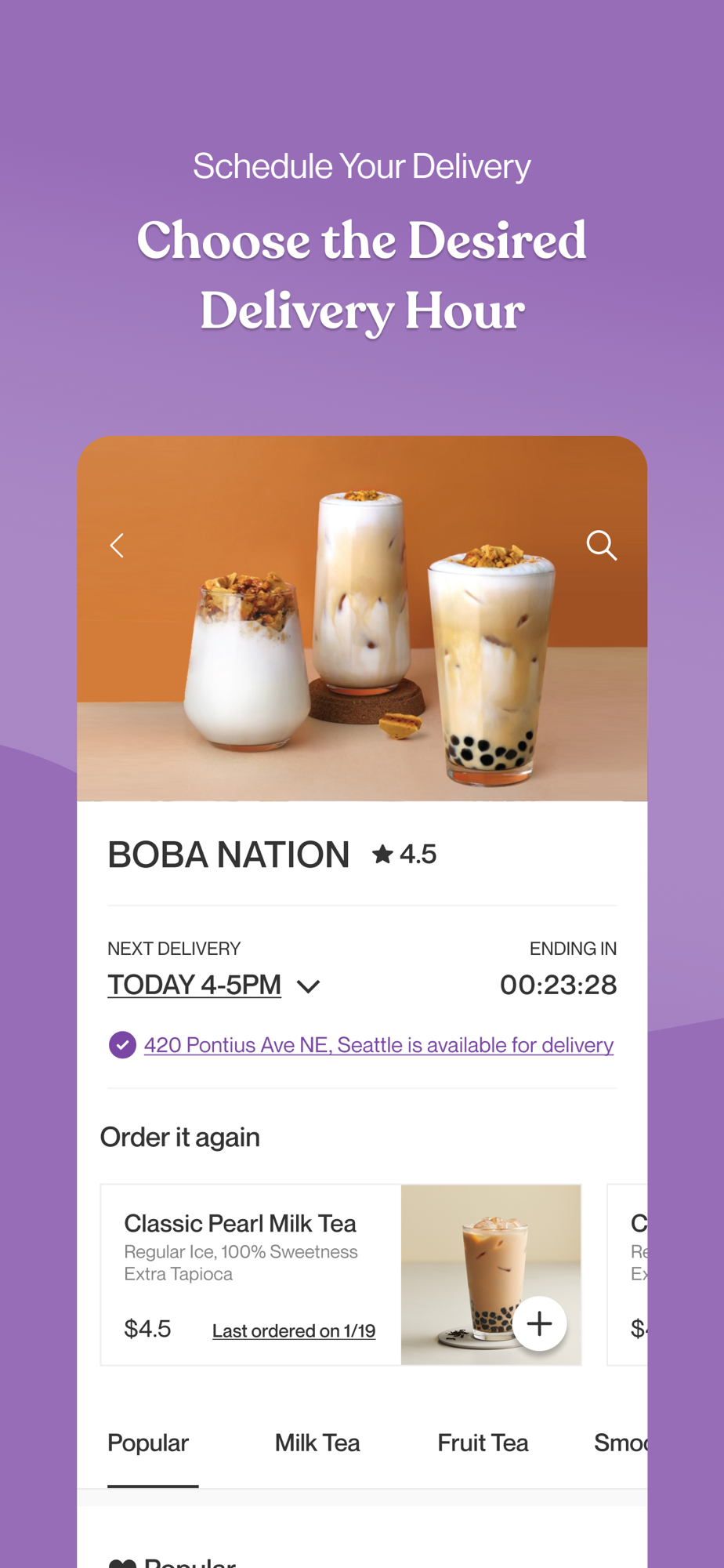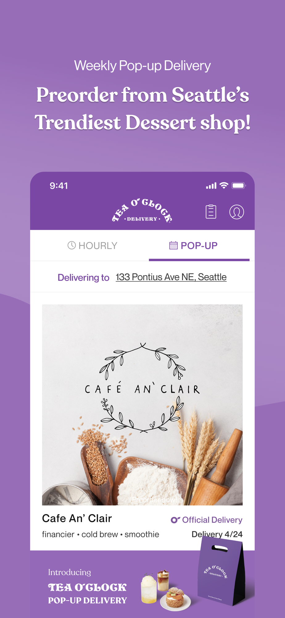 Stay tuned for our pop-up delivery offers from local favorite dessert shops! Pop-up delivery is a pre-order offer that delivers on weekends. Make your weekend with TEA O'CLOCK!