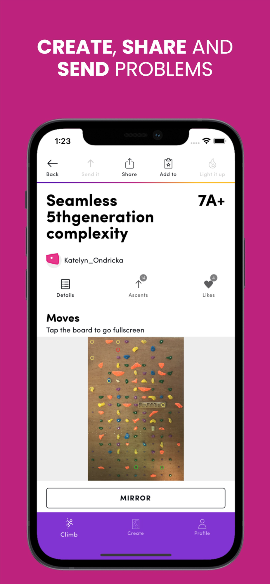 Our hardware and mobile app integrate to give you a magical climbing experience.