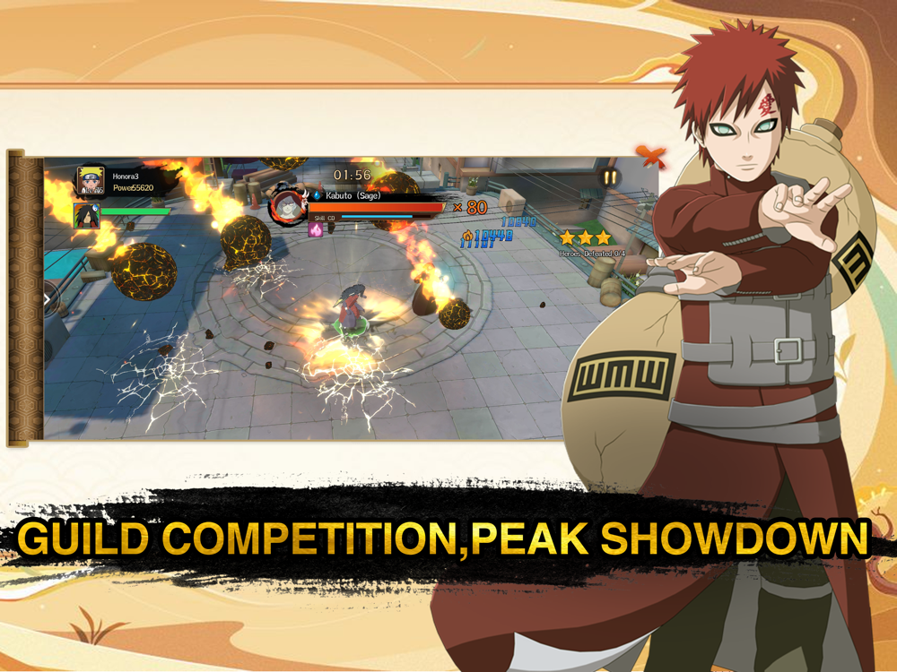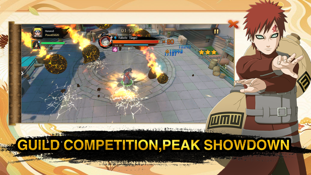 All punch bits,feel the thrilling hits!Normal attacks combined with powerful ninjutsu to play UNLIMITED COMBOS, showing the uniqueness of each ninja and the subtle cooperation between ninjas! Classic ninjutsu cast at will, ultimate special effects, cool full screen!