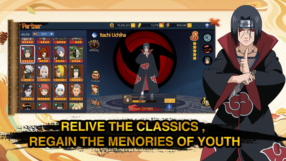 Ninja awakening The hottest ninja action fighting RPG mobile game of 2020. You can play the 3 main protagonists, relive the classic plot, and find the original touch. From the first chapter -- the Ninja test --Shippuden, you can experience hearty ninjutsu Combat combos and full-screen secret technique