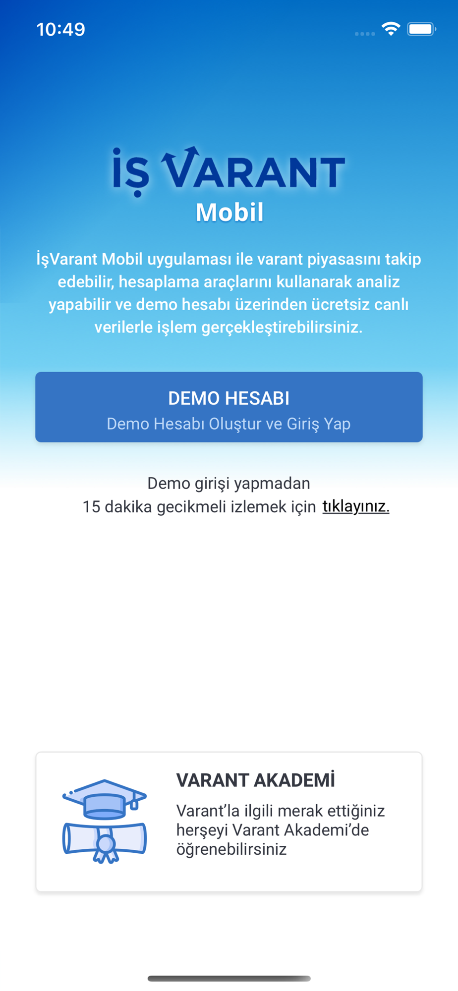 İş Varant Mobil uygulaması ile varant piyasasını takip edebilir, hesaplama araçlarını kullanarak İş Yatırım varantlarına dair detaylı analiz yapabilir, akıllı varant filtresi ile istediğiniz dayanak varlık için varantları karşılaştırabilir ve en uygun varantı seçebilirsiniz. Demo hesabı üzerinden ücretsiz canlı verilerle işlem gerçekleştirebilirsiniz.