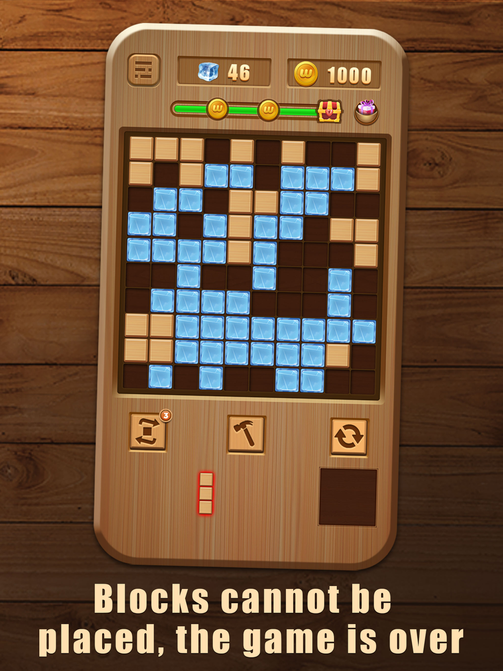 Destroy the ice block and Graphics by creating full lines vertically or horizontally with wood block