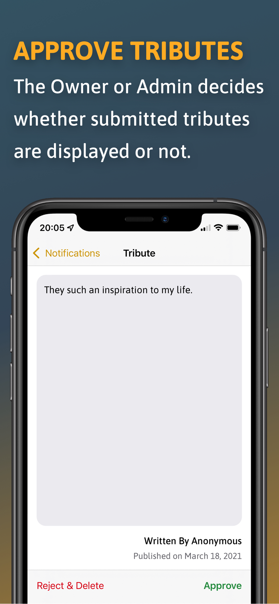 - Allow anyone to submit their own tributes and you'll be notified to review them and you decide whether they should be displayed or not.