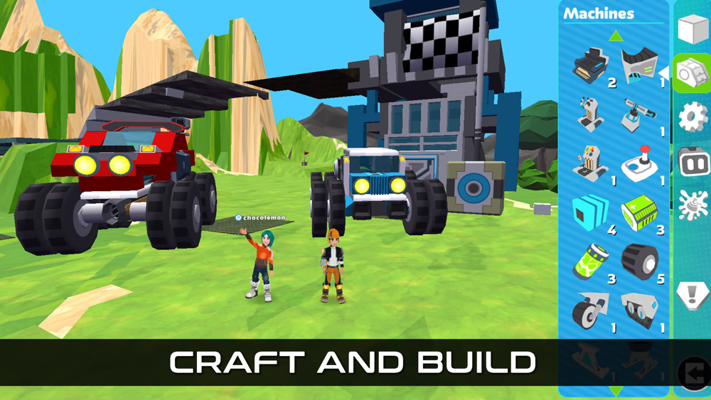 Terraform your world, build a home pad or base, design machines, vehicles, and mission helpers. You can even create your own digital playground games to challenge your friends!