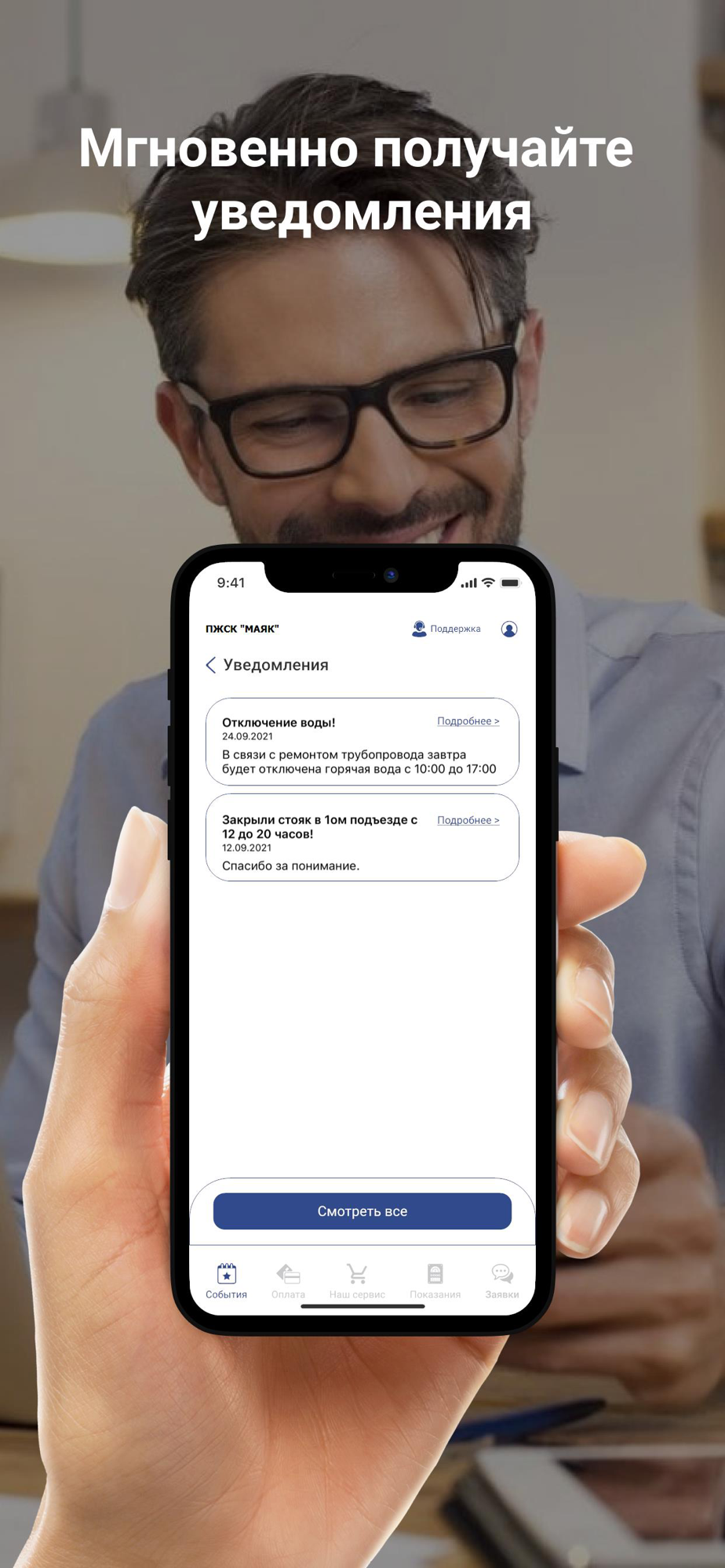 Приложение "ПЖСК Маяк" - это личный кабинет для жителей. Приложение позволяет жителям просматривать и сдавать показания учета, обращаться по возникающим вопросам, контролировать расчеты.