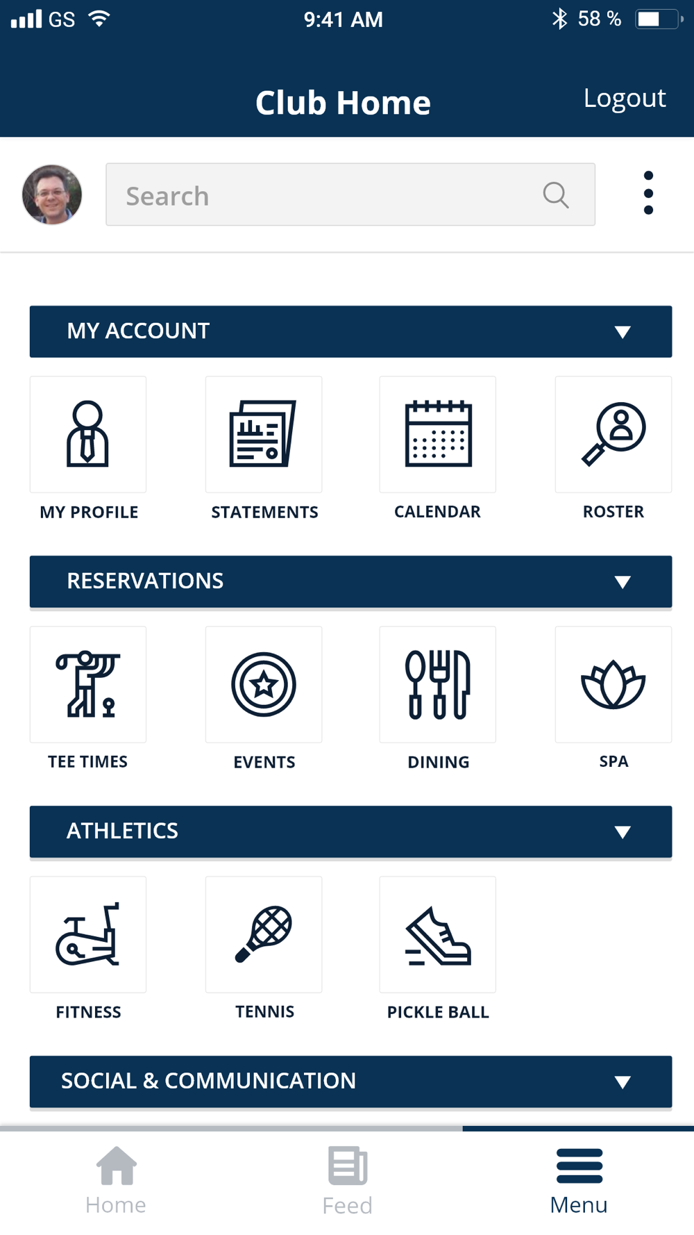 Bellevue Club Mobile App can monitor statements, explore the directory, stay updated on club events, make reservations, and more.