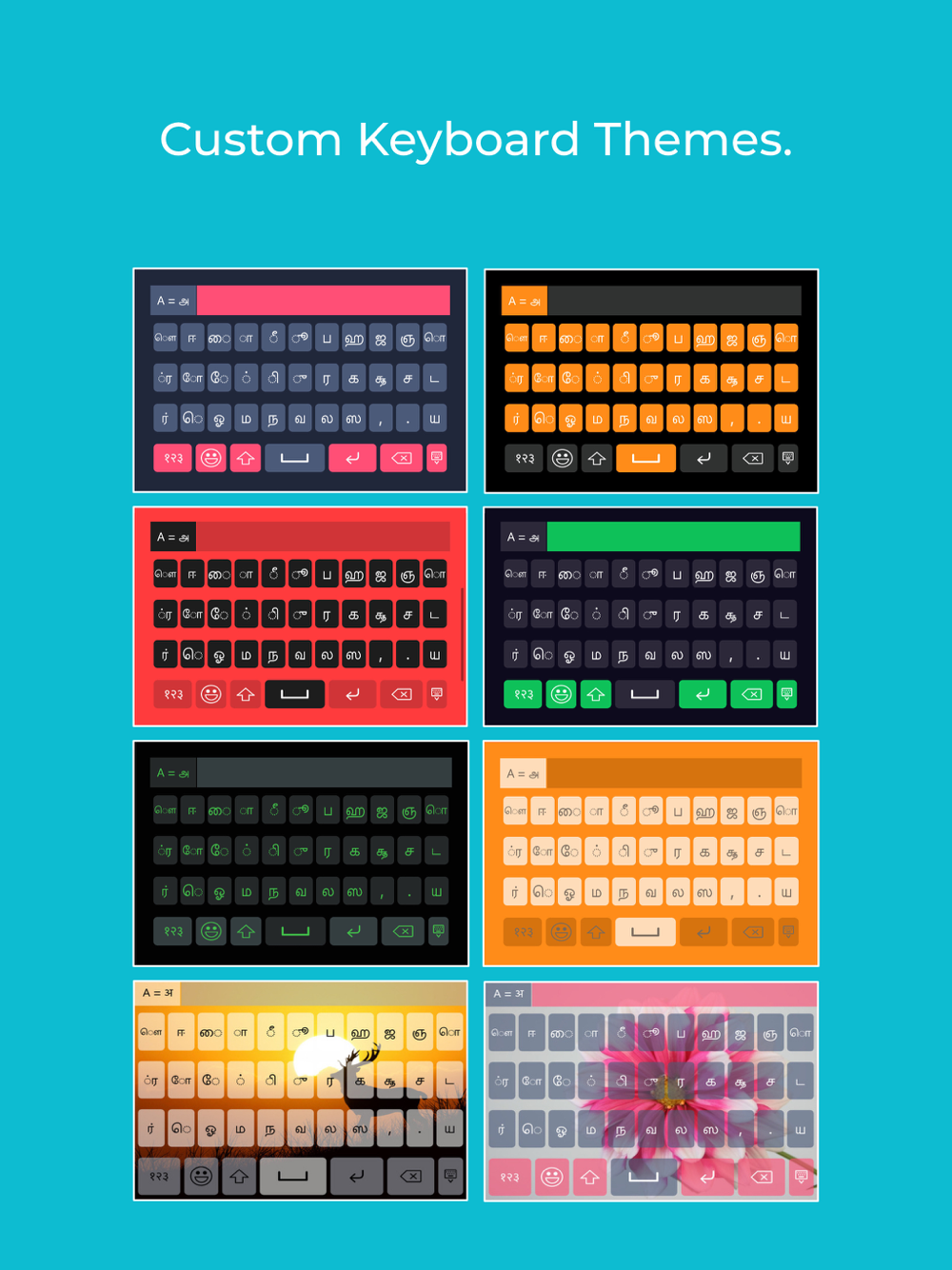 • With the Tamil keyboard for iOS, you can even set your own image in the background.