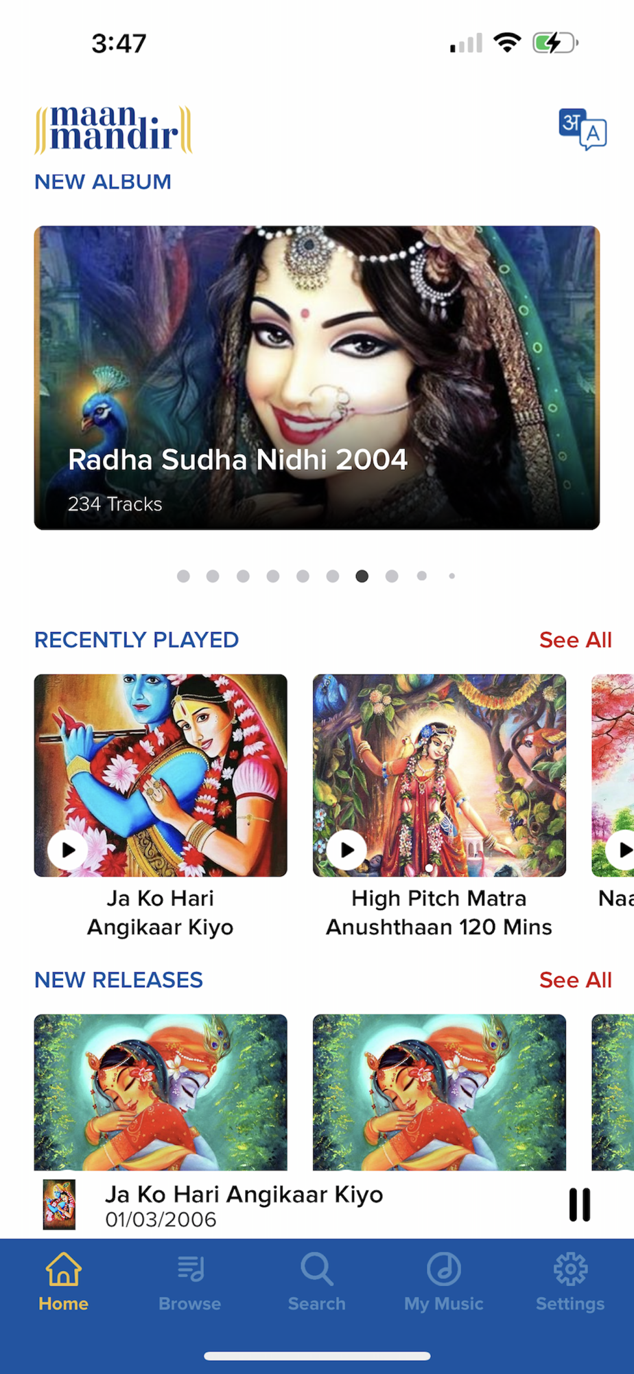 Maanini - one of the names of Shri Radha Rani, aims at providing rich experience of listening and managing Satsang and Kirtan to users with following features to the users: