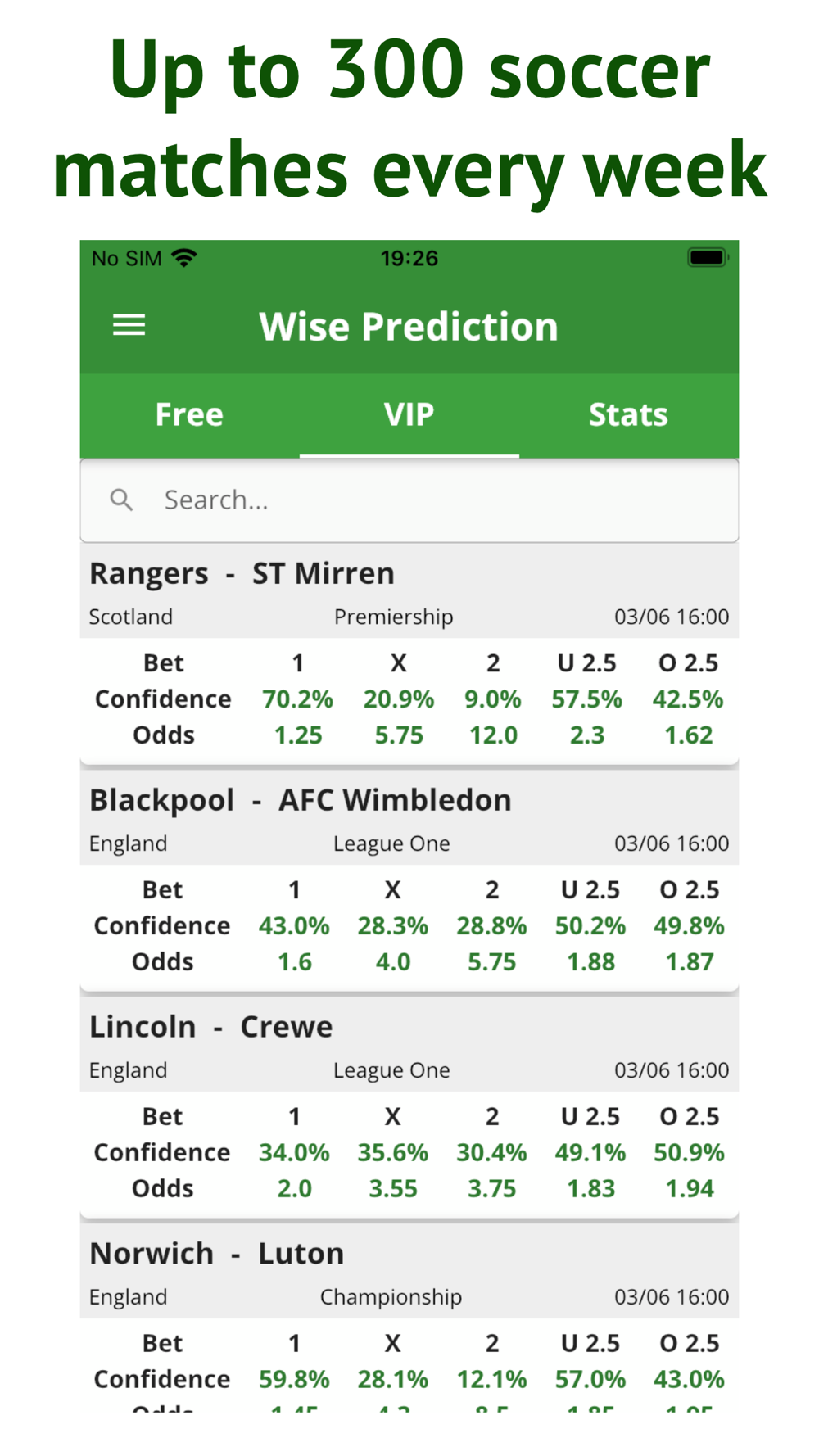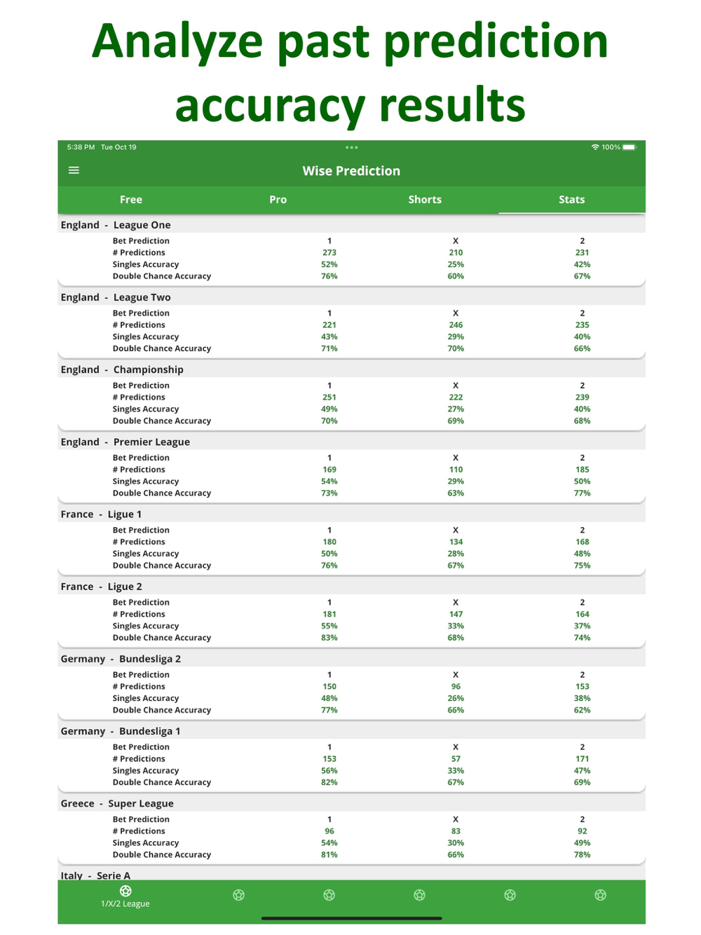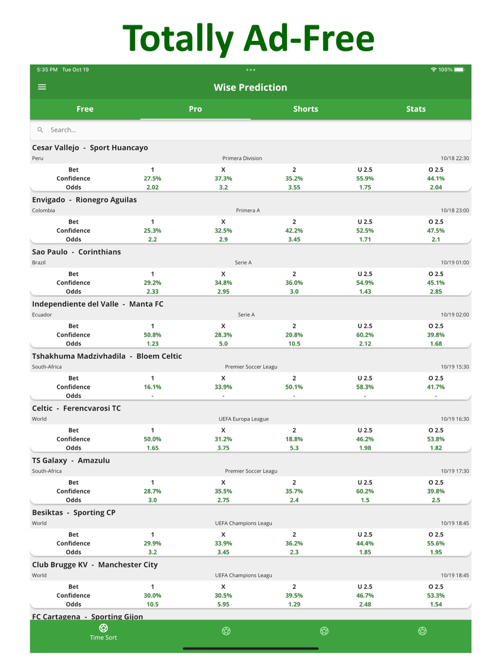 Wise Prediction is a totally ad-free application and provides AI powered betting tips and predictions for soccer games.