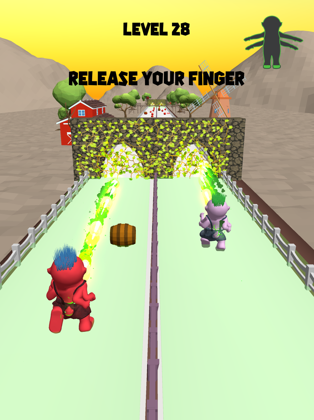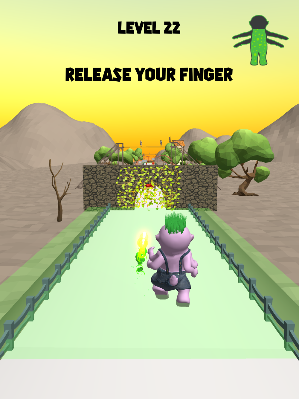 Can you collect food without getting caught to any obstacles? As you eat food you get big and strong. Your vomit is toxic, as long as your tummy is full you can melt those obstacles on the road! However, beware of the traps! Be careful when you run under the bridge there is a man awaiting with a net! Also don’t step on the rope when it’s on your way, it’s an another trap placed to catch. It’s a tough road to complete but you are a strong mutant. Along with those four arms it will be easy to feed your tummy. On the road you will see a bow full of food, you can get that food but with a prize, you’ll loose an arm to get all in one!