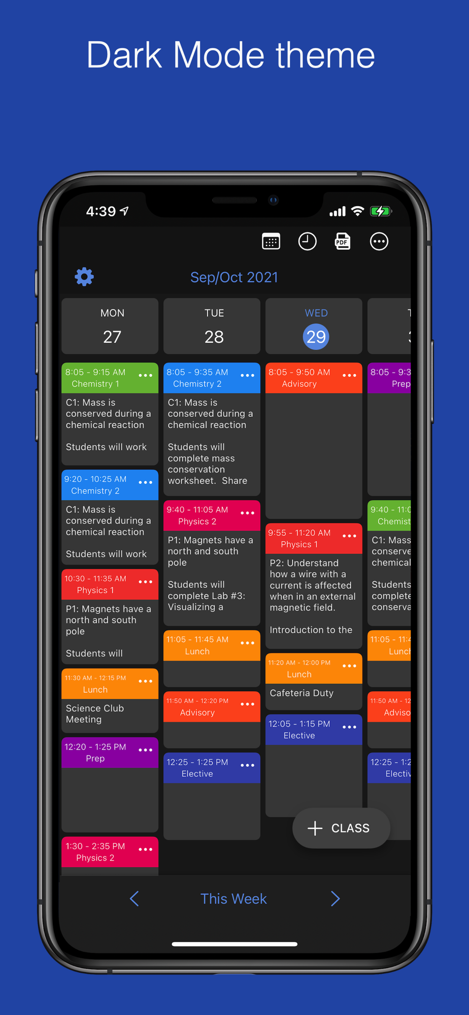 • View lessons for the day, the week, or by a class
