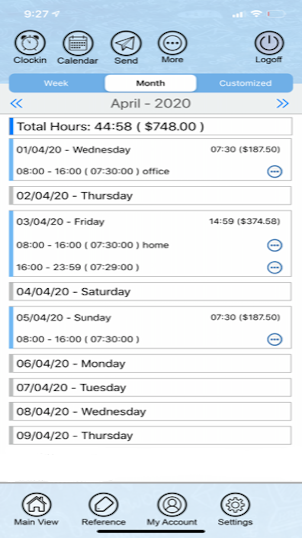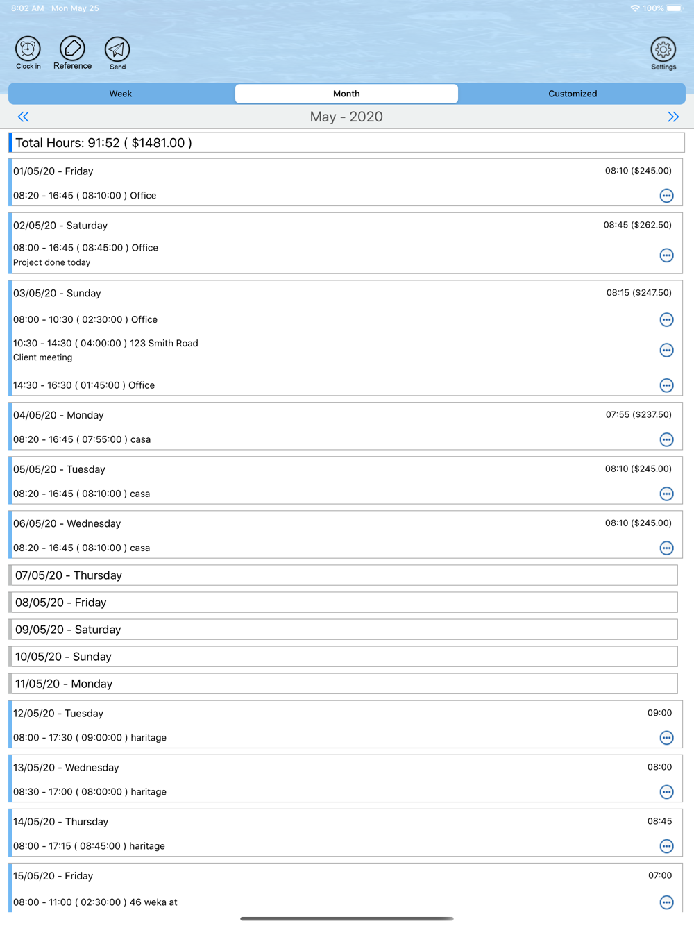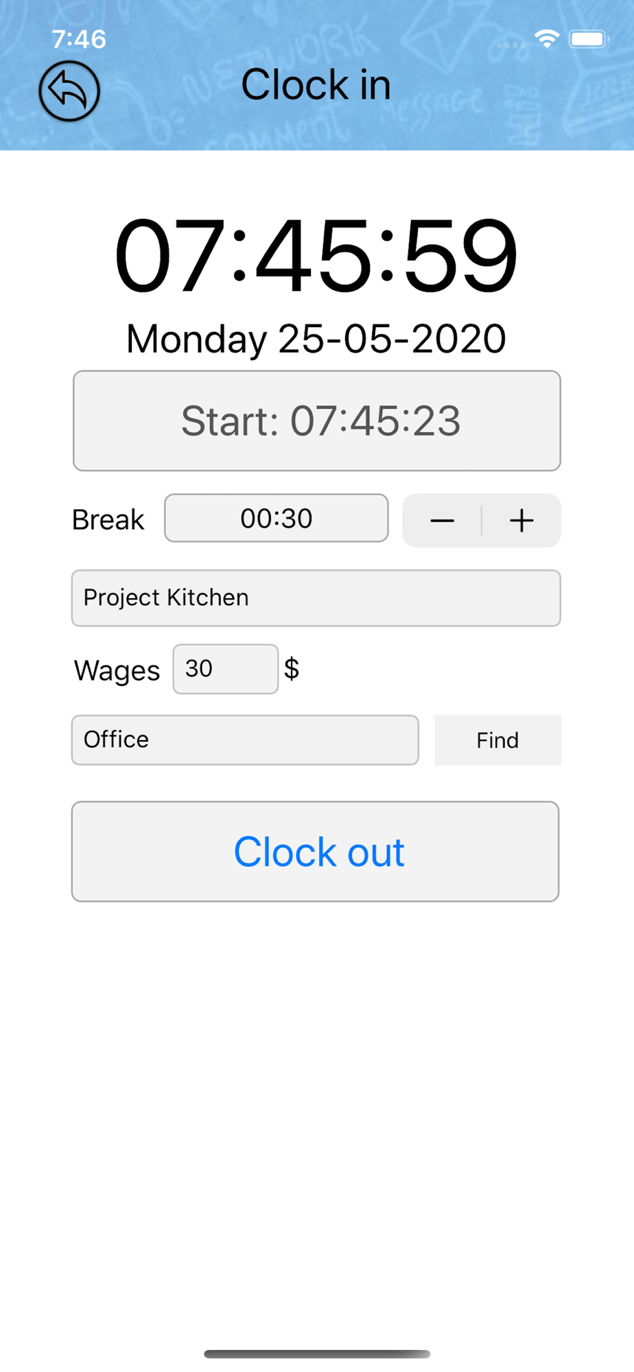 Save on 'Settings' your schedule hours - Start, Finish, Break, Wages, Tags, and Edit everything if necessary.