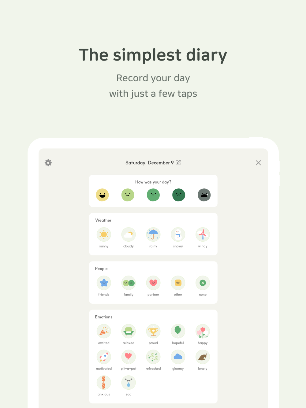 ○ Tap the mood beans and activity icons for a simple record