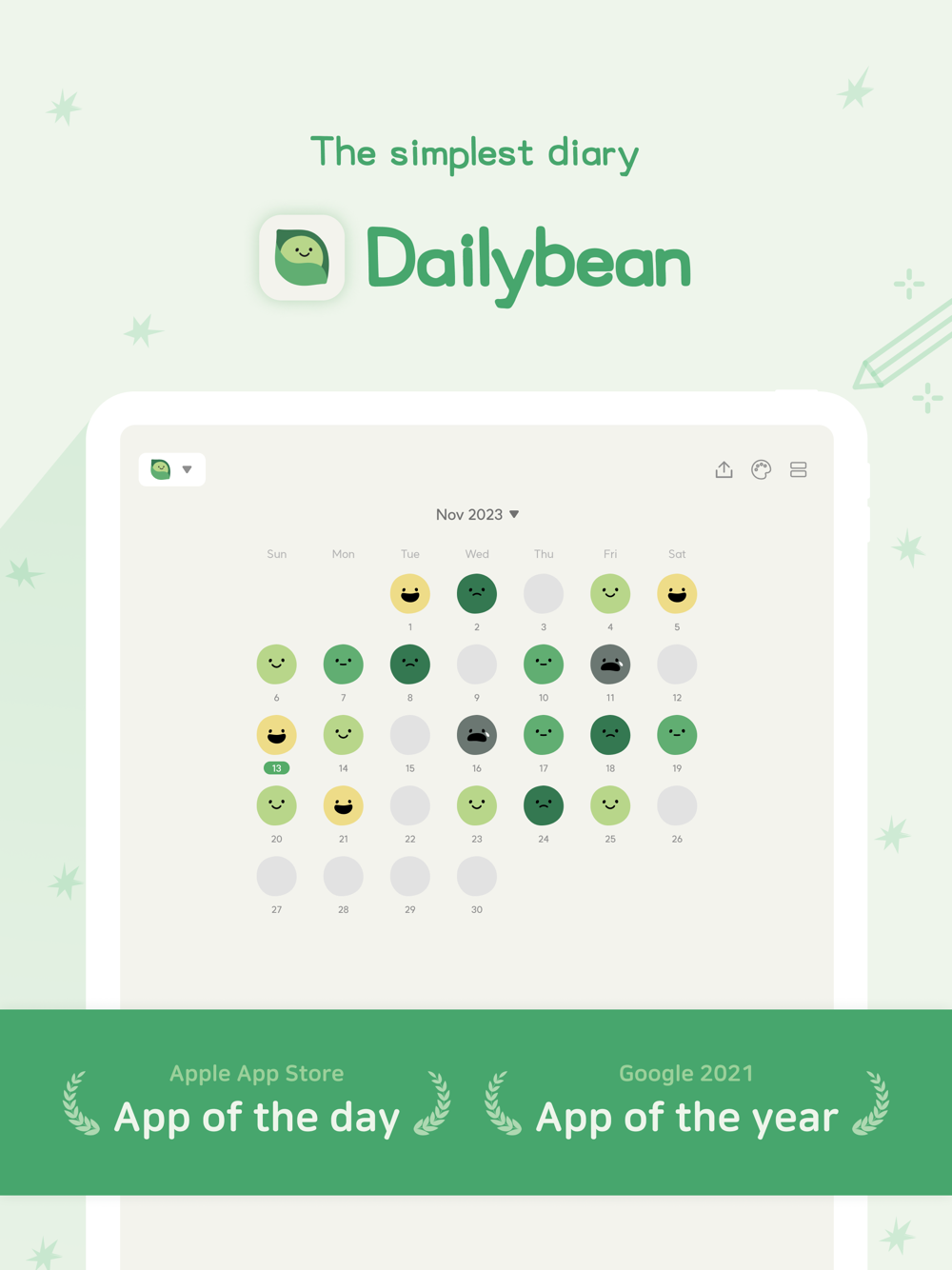DailyBean is a simple diary app for those who want to record their daily lives easily. Record your day with just a few tabs!
