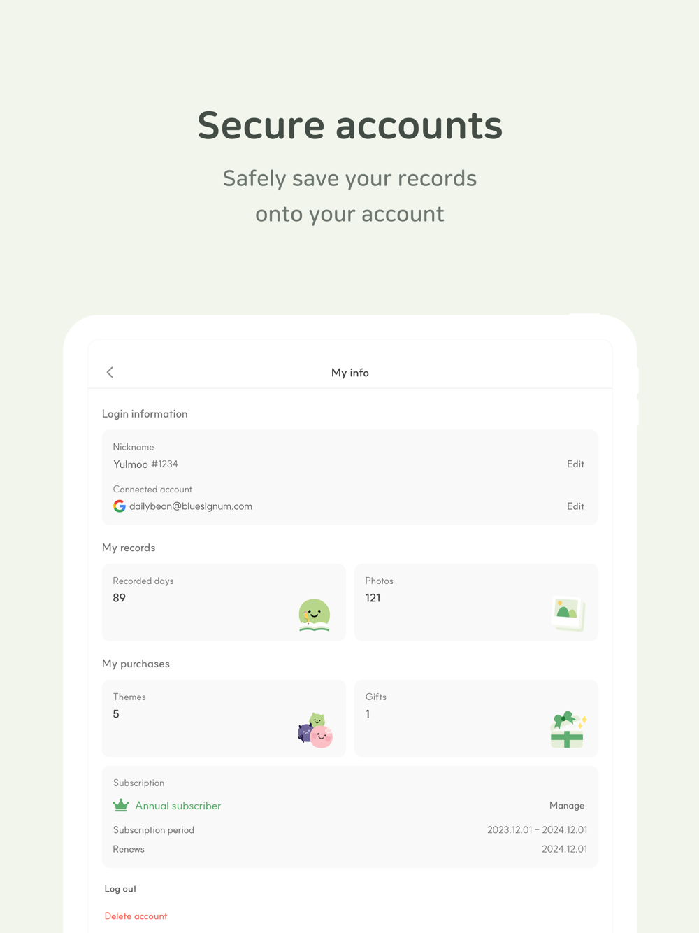 Take a look at how you feel during a month with five mood beans. If you click on the bean, you can check the record you left that day right away.