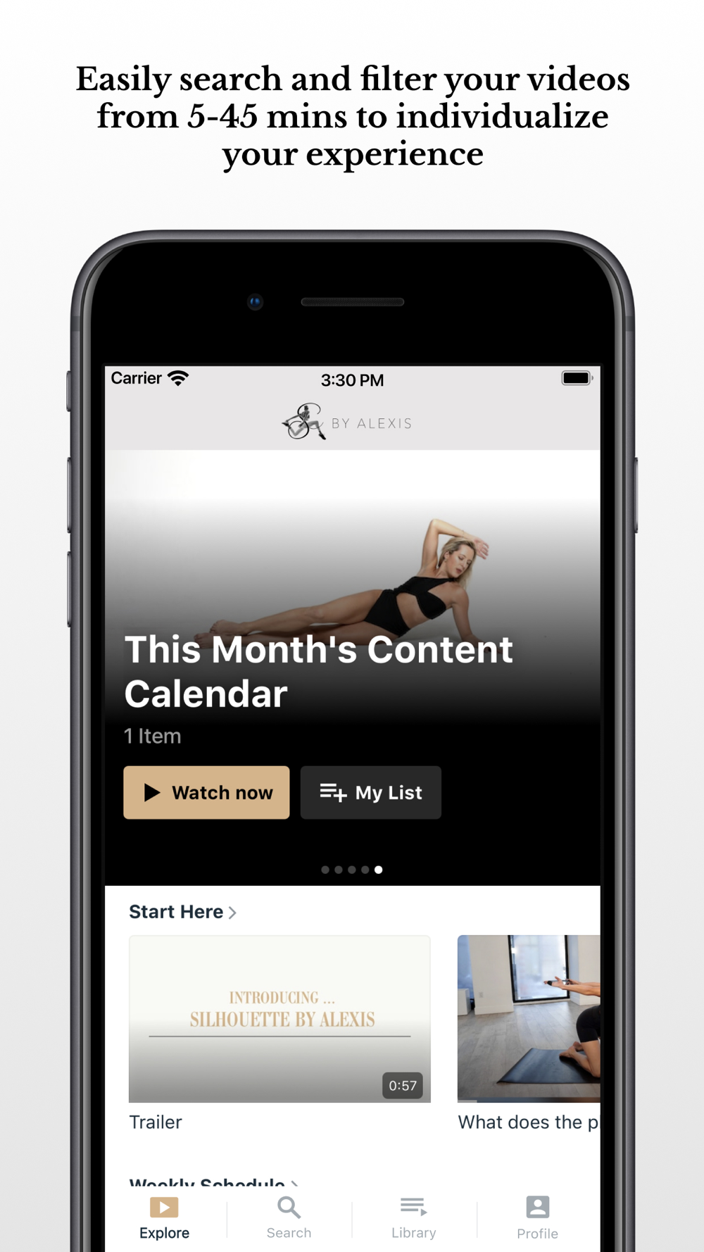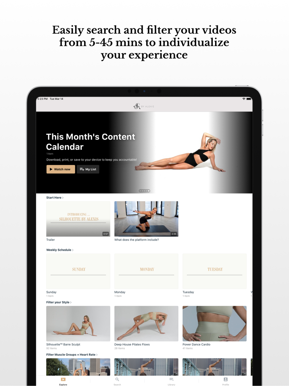 - A weekly schedule is offered for the perfect effective blend of barre, pilates, and cardio for those who prefer not to scroll around the app