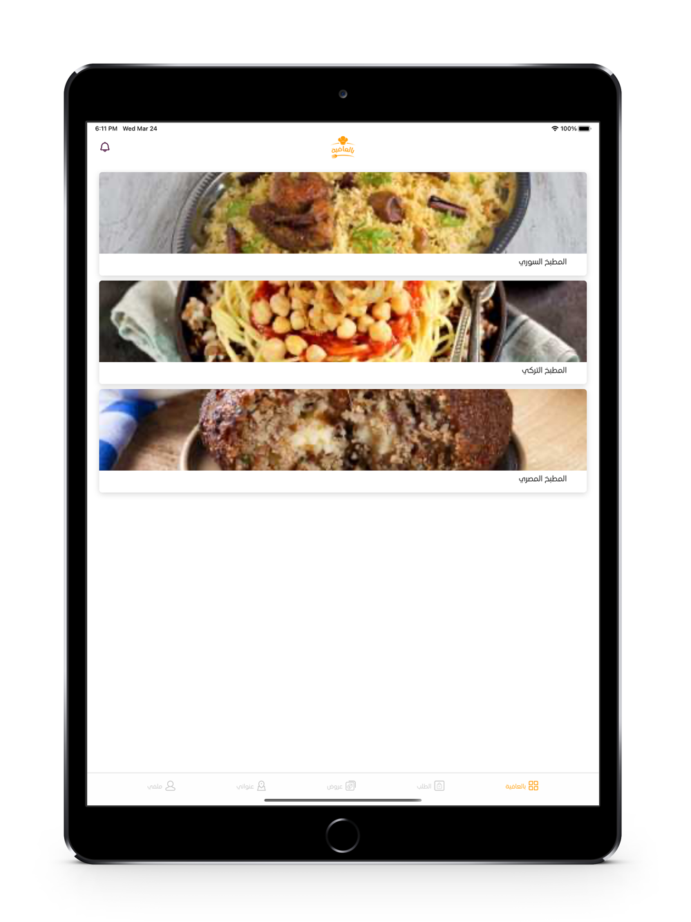 يحتوي تطبيق بالعافية على مطابخ شرقية متنوعة تٌلبي جميع الأذواق والرغبات يمكنك تصفح التطبيق ومشاهدة جميع أنواع المطابخ والمأكولات التي تقدمها لتختار الوجبة التي تفضلها وتصلك بأسرع وقت ممكن.