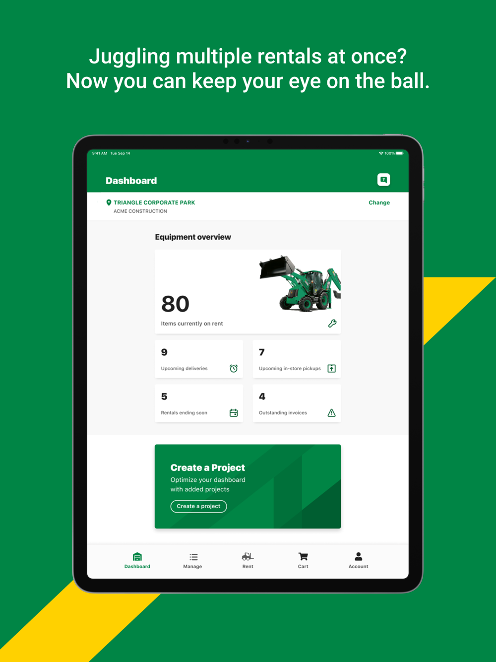 • Manage rentals for multiple projects in one place.