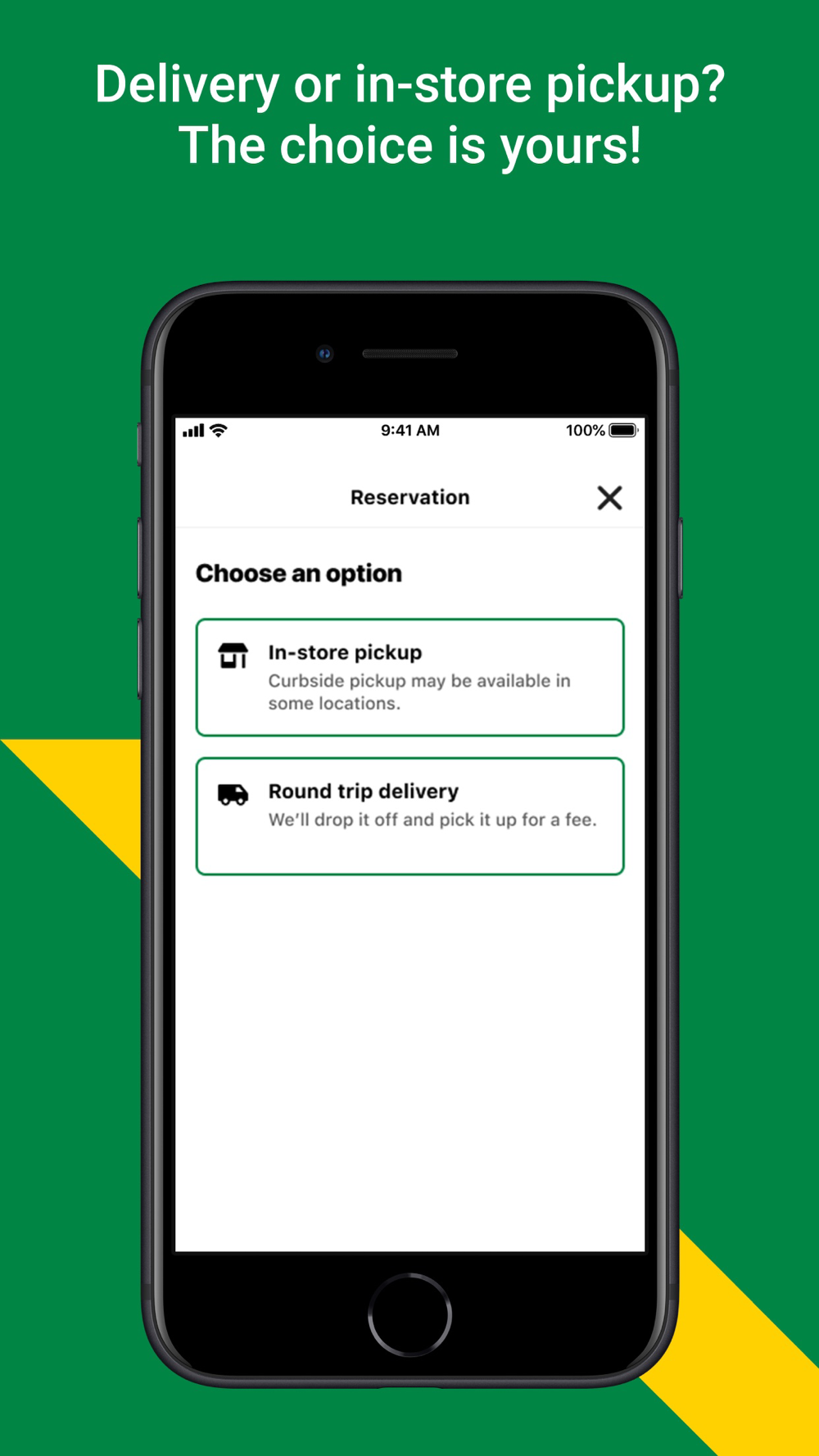 • Rent online and get your rental equipment delivered to you on schedule, or pick it up in-store.