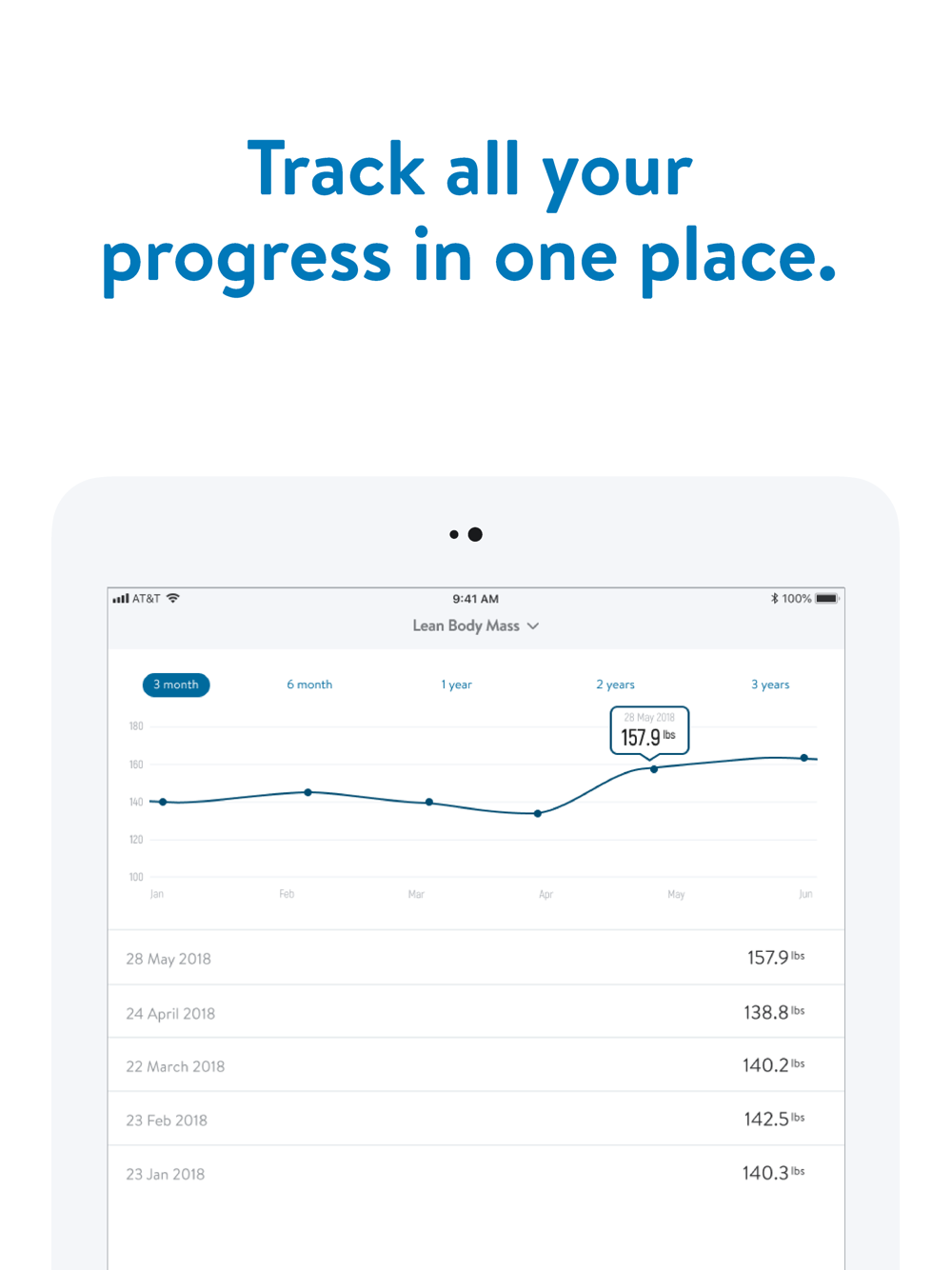 - Connect to wearable devices like Apple Watch (synced to Health app), Fitbit and Withings to sync body stats instantly