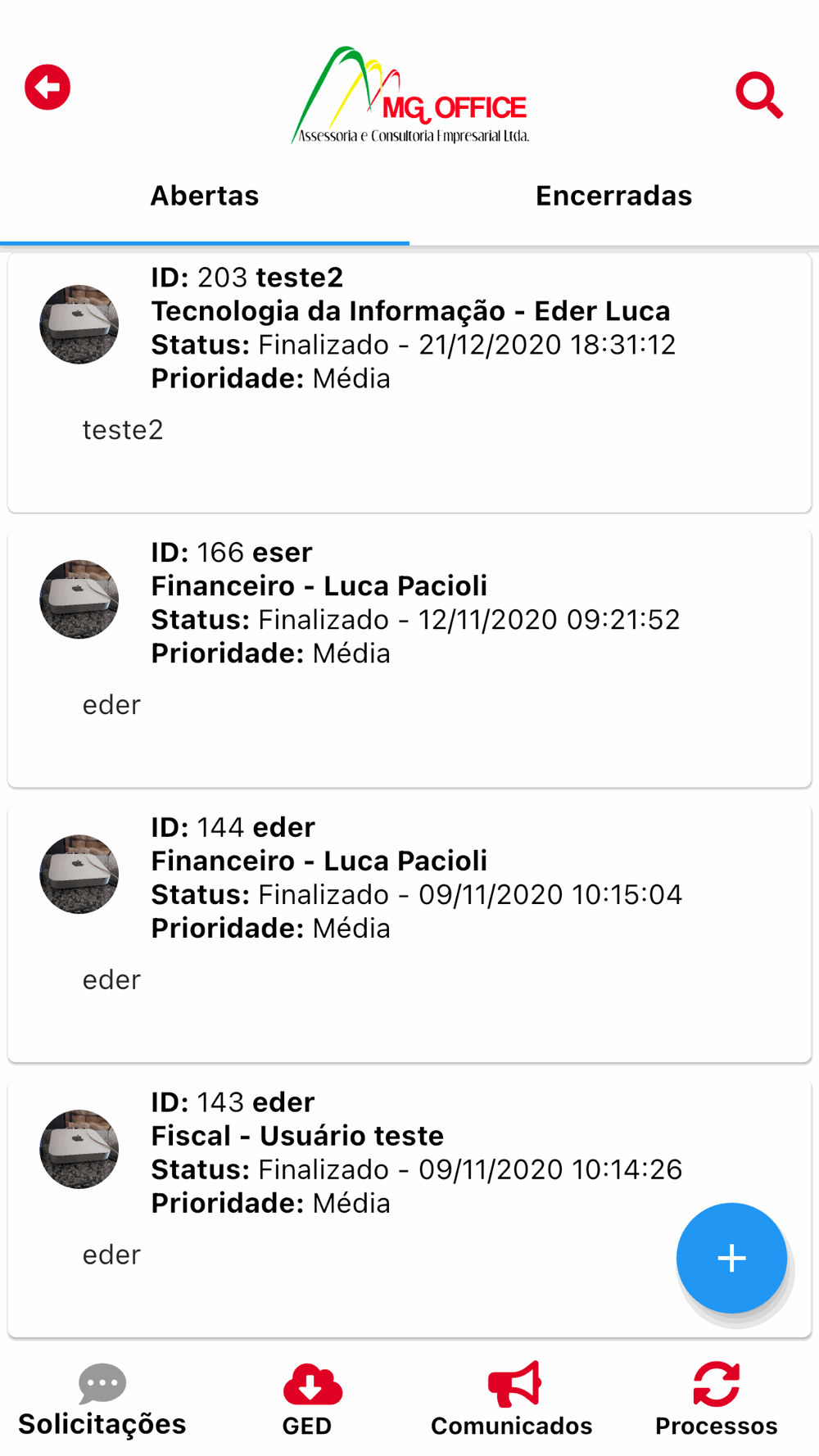 1 - Gerenciamento de Solicitações tanto pelo cliente como pelo escritório contábil;