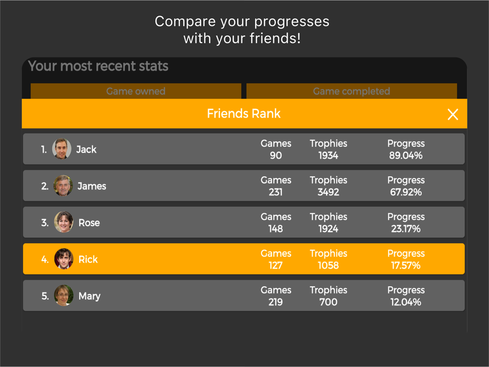 - Show to your friends your achievements and compete to have the best games' statistics.