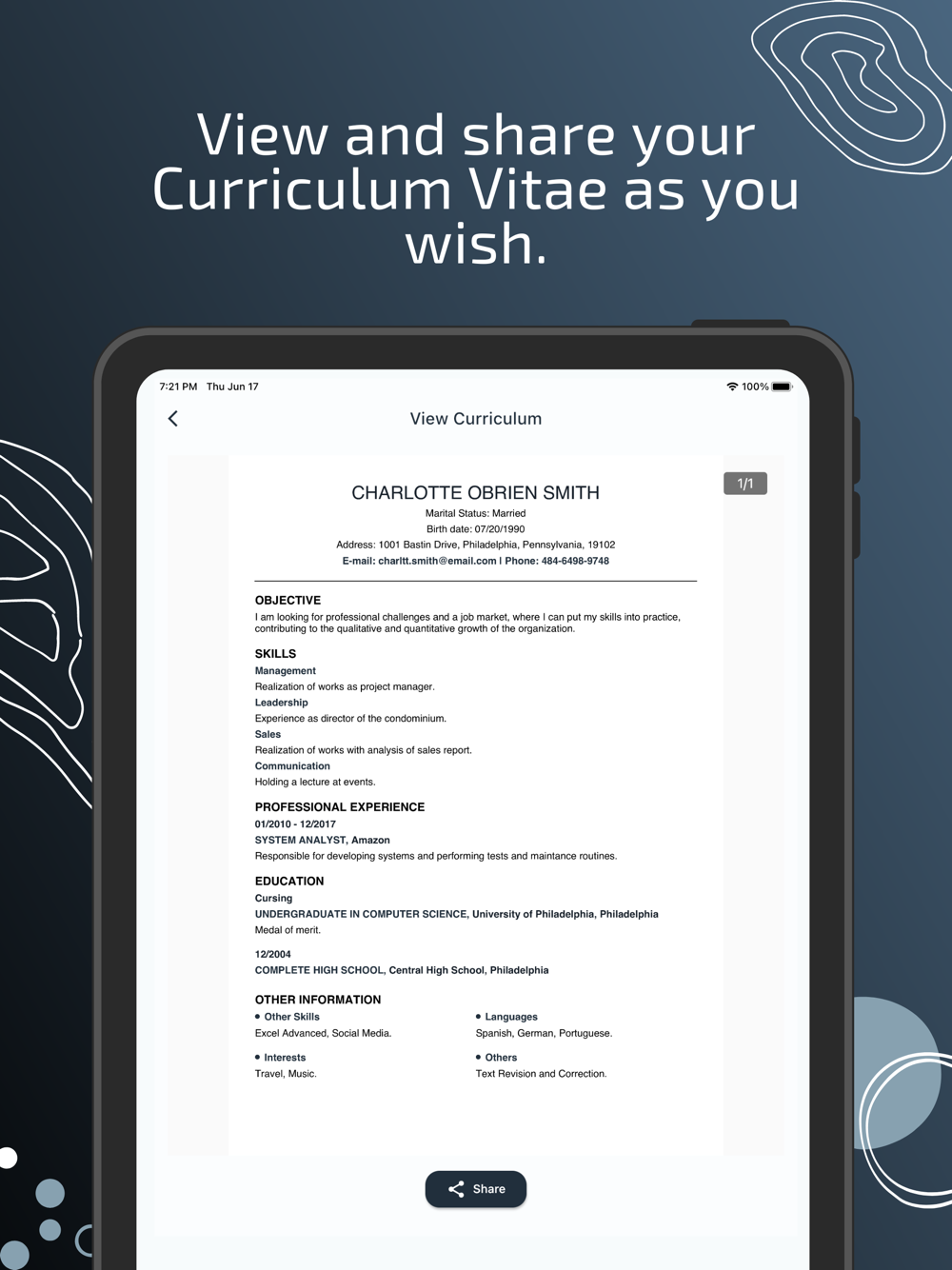 The application allows you to create a curriculum easily and simply for free to help you get a job.