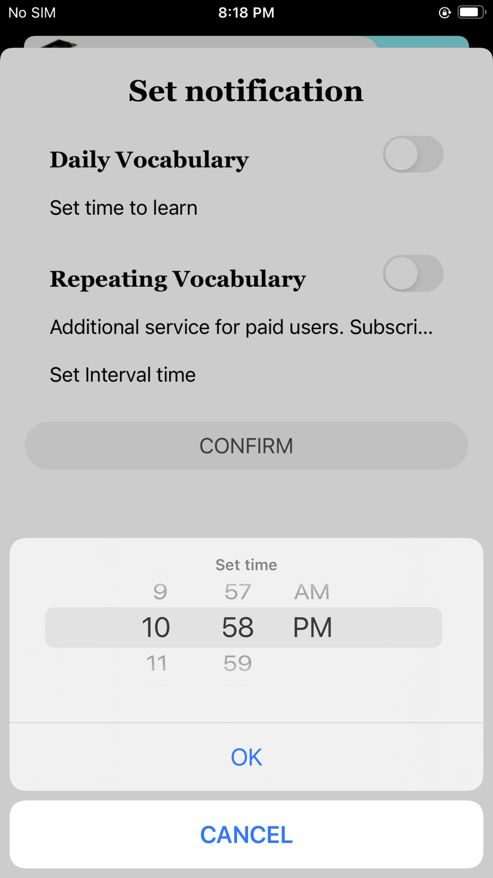 - Set the notification time. The phone will notify a vocabulary with an image.