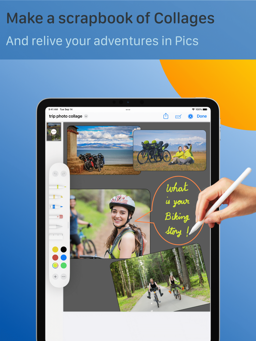 Moments Canvas: Toggle ON the Dot grid to plan your trip days with freehand spreads. Write a mini Story of your travel adventures. Sketch fav moments to give an artist’s account of your adventure trip. Add bordered pics and map snaps and make a Collage. Add Captions. Use the Ruler to draw City landscape.