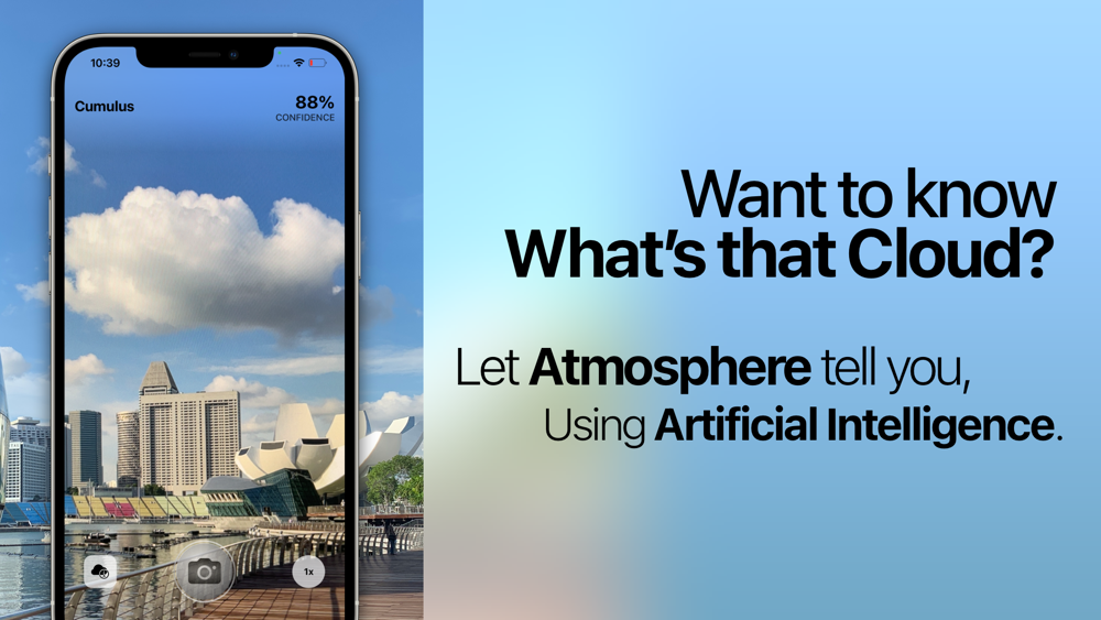 Atmosphere is the app for you. Leveraging on the latest machine learning and artificial intelligence technologies, Atmosphere classifies and tells you what kind of a cloud you are currently looking at, via your device’s cameras.