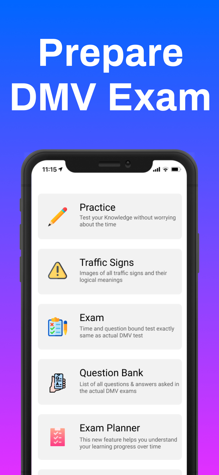 This app is designed for DMV preparation from anywhere. All the questions are based on DMV manual.
