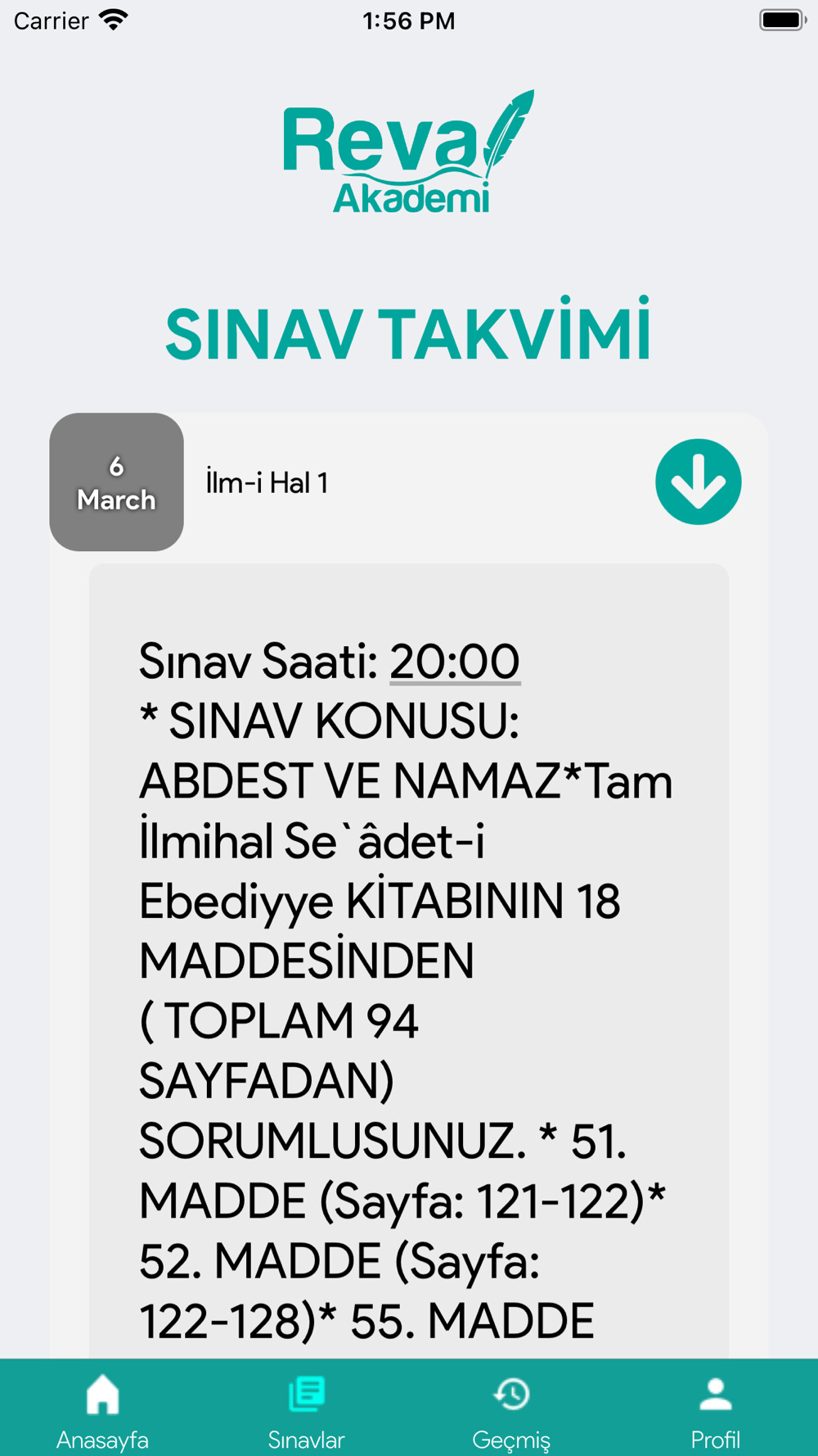 Reva Akademi sınav sistemi.