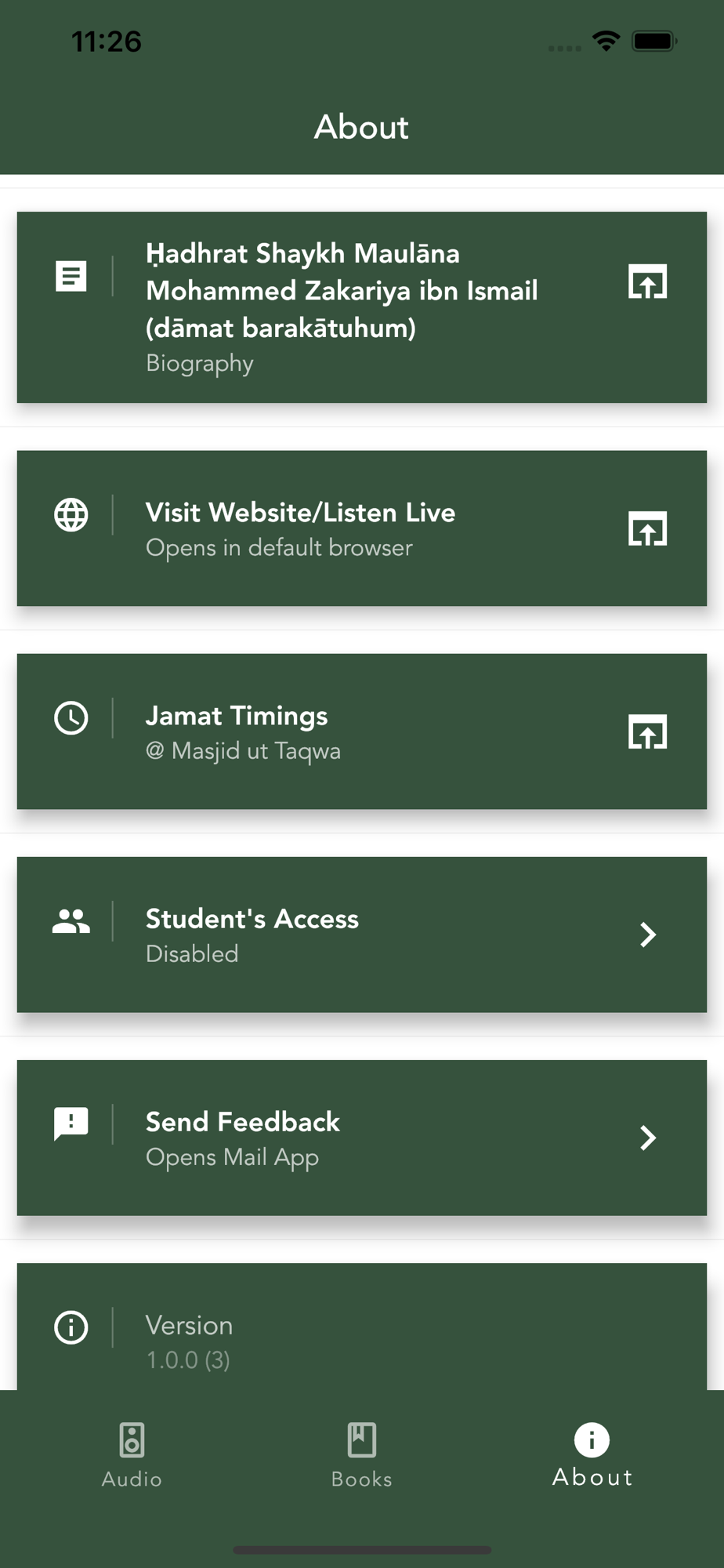 Please note, the app is maintained and updated by students of Shaykh (dāmat barakātuhum). For further inquiries, please feel free to contact us. Jazākumullāh Khayrun!