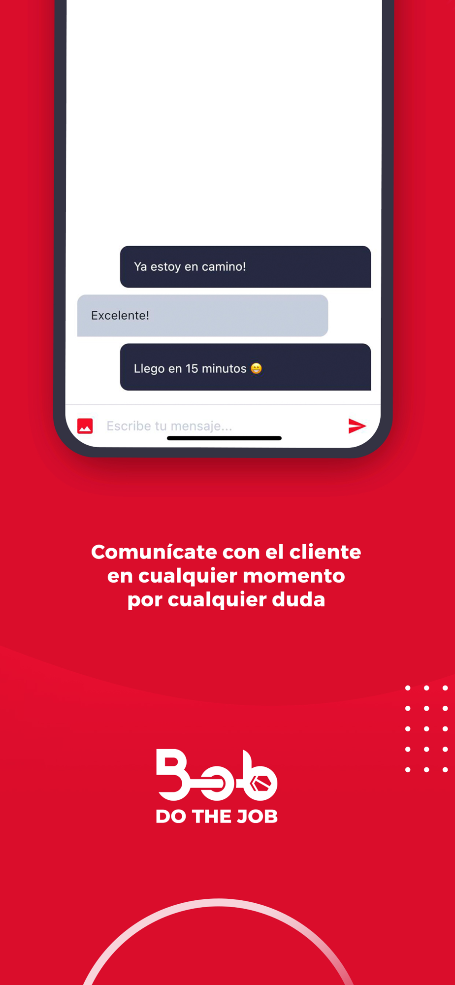 Al momento que un cliente decide pedir un Bobber para cualquier tipo de servicio como reparar una fuga de agua, cortarse el pelo..., el trabajo será enviado a todos los profesionales cerca al cliente que estén dispuestos a trabajar. Si el trabajo es adecuado para ti, todo lo que tienes que hacer es aceptarlo.