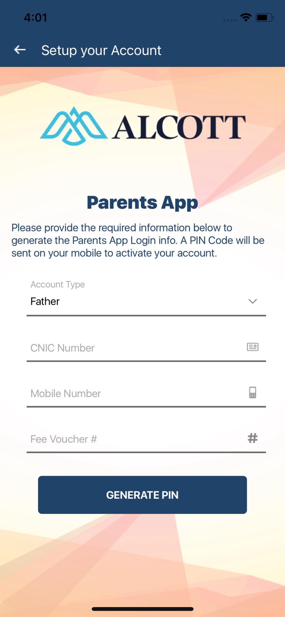 for signup in the app parents first get admission in school and provide their data to school so in the app we required user phone number, CNIC number, and email to conform if the data is exist in school data base. so in signup process the phone number is to verify the parent info and CNIC number required to match data in school data base that why we need it for signup. Also we need info of parent is the user is mother or father of student. after successfully signup we use the phone number as user name in the app.