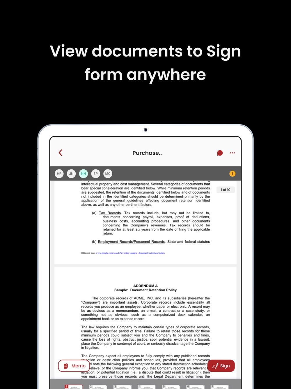 iZign application will help you to sign document anywhere with more security by using specific device to sign your document.