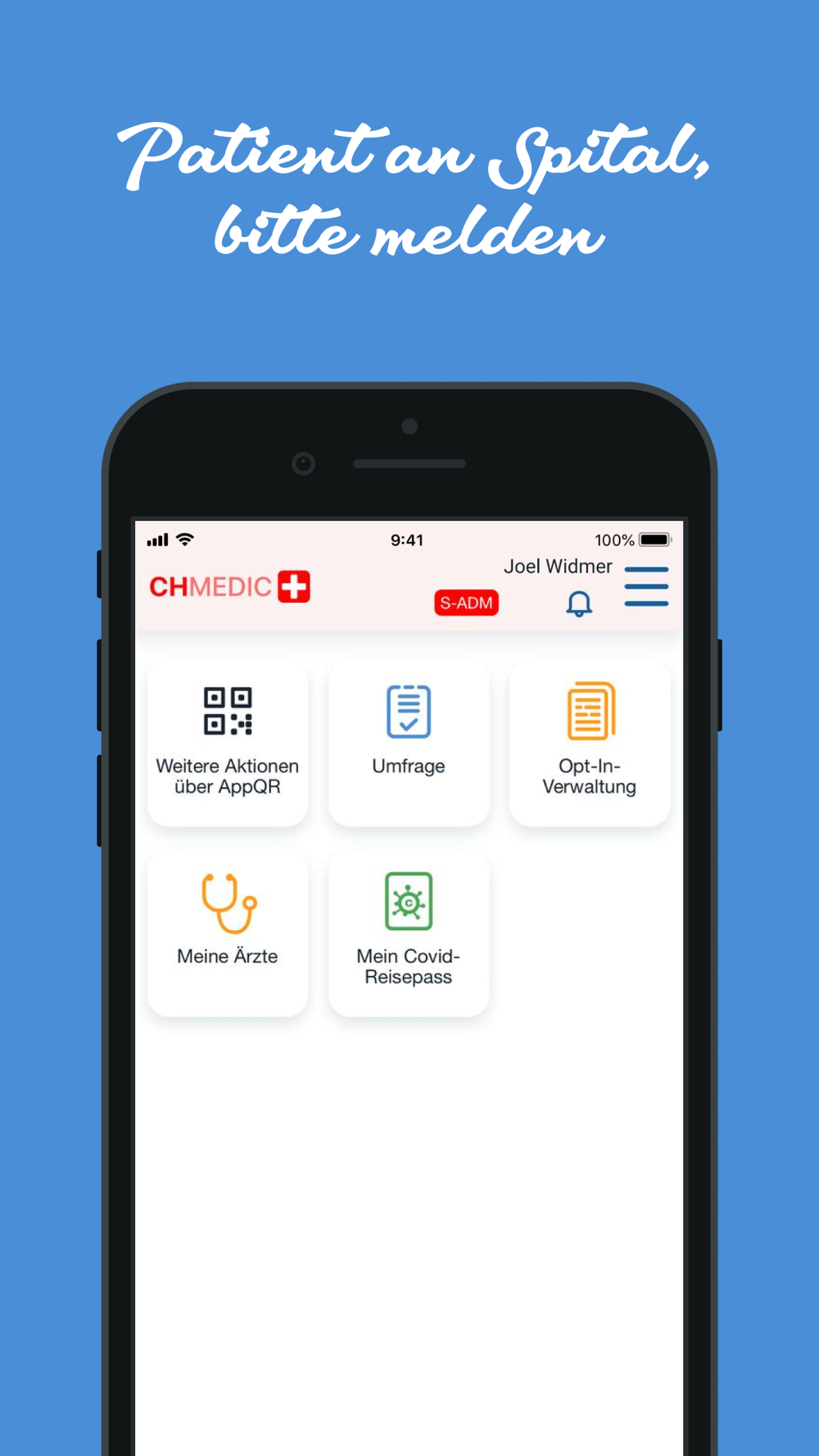 Die CHMedic-App ist das Frontend der CHMedic-Welt, welche Ihnen als Patienten oder Arzt den zentralen und mobilen Zugriff auf Anwendungen im Gesundheitsbereich gibt.